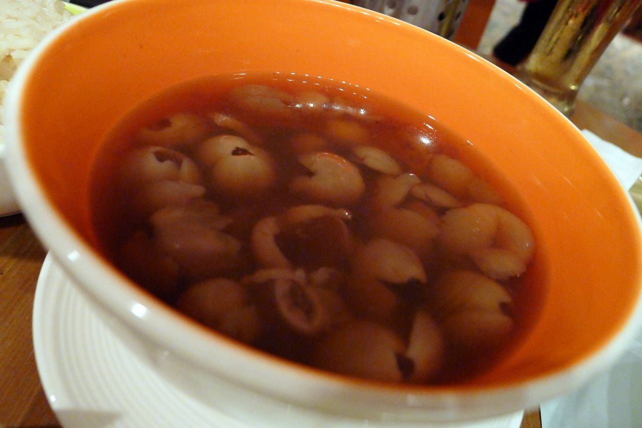 甘酒っぽいものかと思いオーダーしましたが、甘い竜眼かライチの温かいスープでした。