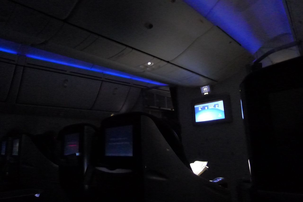 どれくらい窓が大きいかと言うと、機内の照明が暗くなると、外の夜景を楽しむことができるほど。